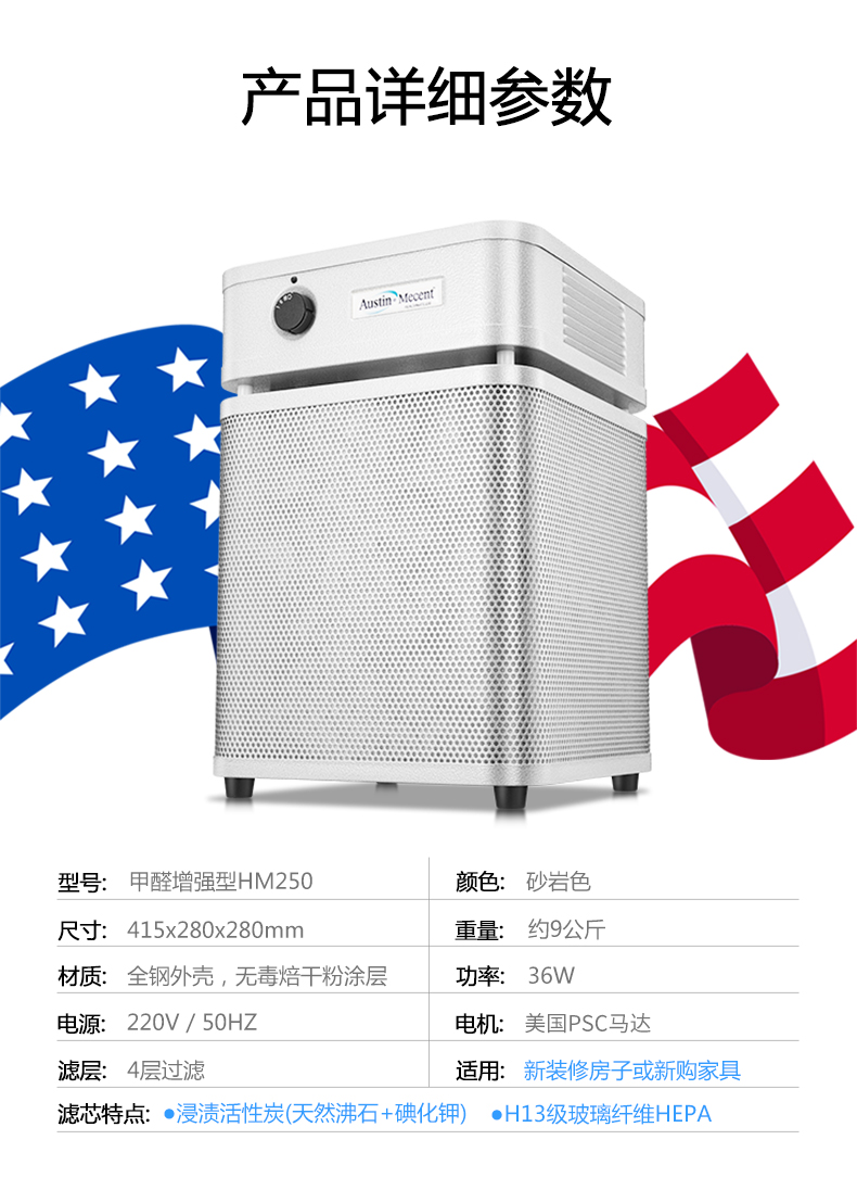 【美國(guó)原裝進(jìn)口】推薦新裝修/除甲醛/除味 適用中小面積空間 - 奧司汀空氣凈化器HM250