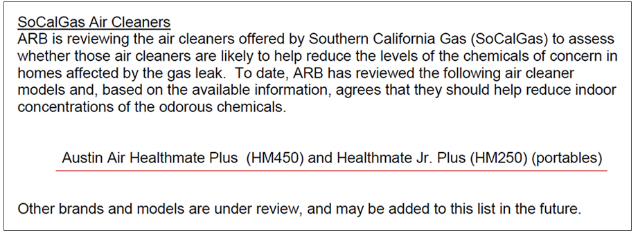 ● 作為本次天然氣泄漏事故的總負責人,南加州煤氣公司總裁兼CEO公開信承諾,居民購買加利福尼亞空氣資源委員會(ARB)指定購買的(奧司?。┛諝鈨艋鳎瑢⑷~補貼居民。